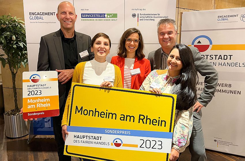 Insgesamt 13 deutsche Kommunen wurden im Rahmen einer feierlichen Preisverleihung am 5. Oktober 2023 im fränkischen Fürth geehrt. Seit 20 Jahren wird der Preis durch die Servicestelle Kommunen in der Einen Welt (SKEW) von Engagement Global im Auftrag des Bundesministeriums für wirtschaftliche Zusammenarbeit und Entwicklung (BMZ) an Städte und Gemeinden verliehen. Alle zwei Jahre wird damit herausgehobenes lokales Engagement von Kommunen im Themenfeld Fairer Handel und Faire Beschaffung ausgezeichnet.
